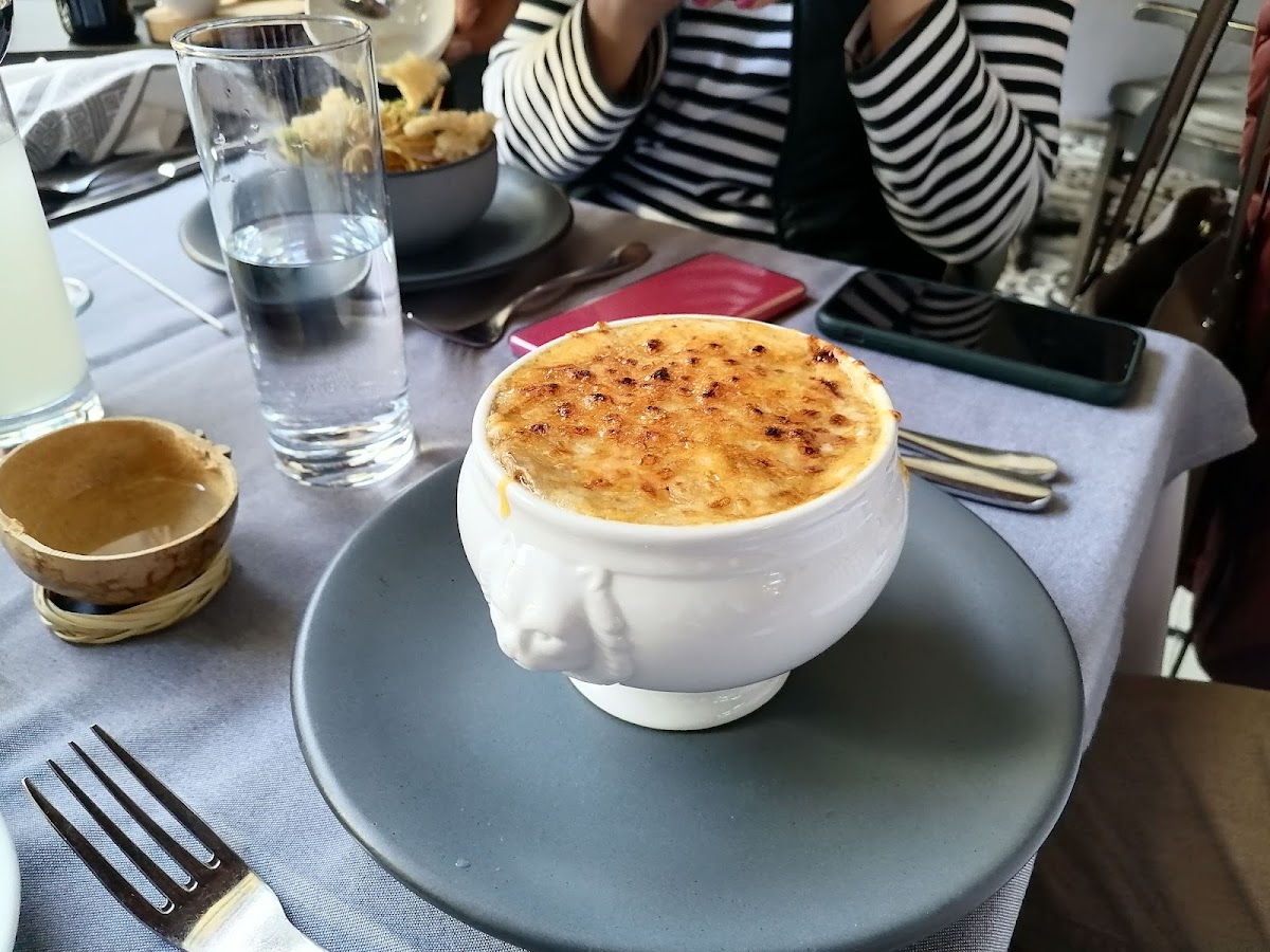 First of all, the atmosphere is amazing. It is like you are dining in Paris. The food is good and the service was excellent