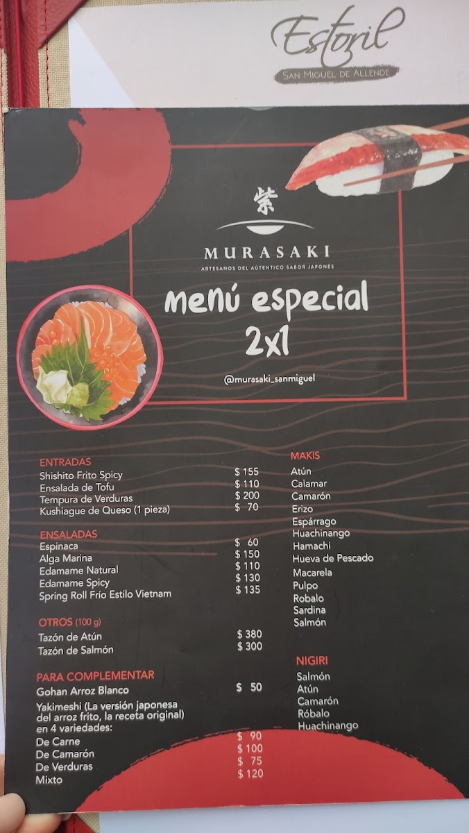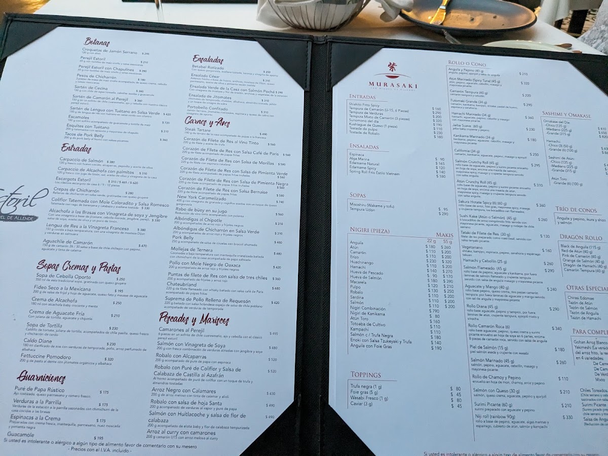Estoril y Murasaki Menu
